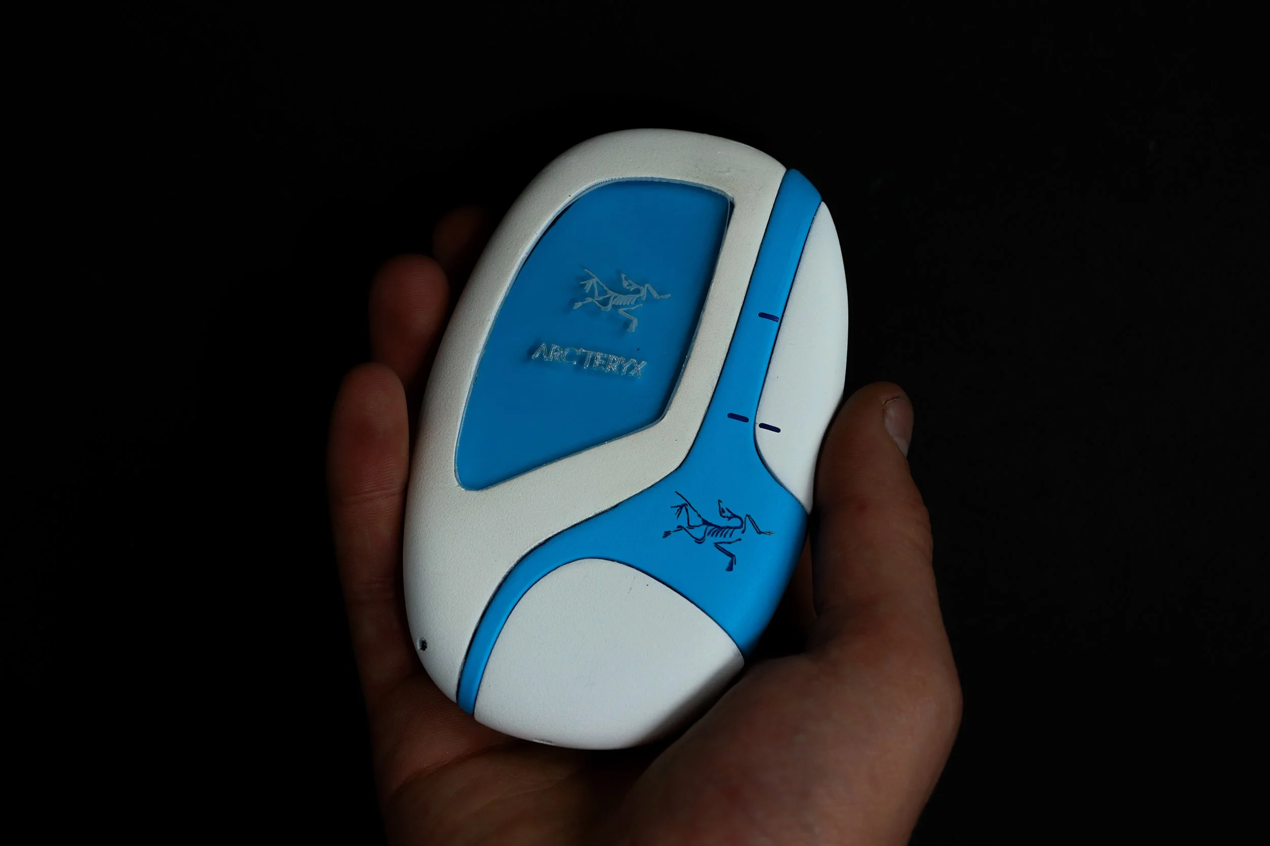 The ASPECT beacon draws inspiration from the refined alpine minimalism of Arc’teryx as was designed for the brand. Refined technical features, sculped ergonomic geometry and a glacial-inspired color scheme inspire the form and function. The design focuses on the elegant and ergonomic flow inspired by a glacier. This feel hopes to match the premium performance of Arc’teryx in extreme environments. Arc’teryx’s name and logo refer to the earliest known bird, which evolved wings to adapt to its hazardous environment this adaptaion to the surroundings was another deisgn inspiration of the ASPECT