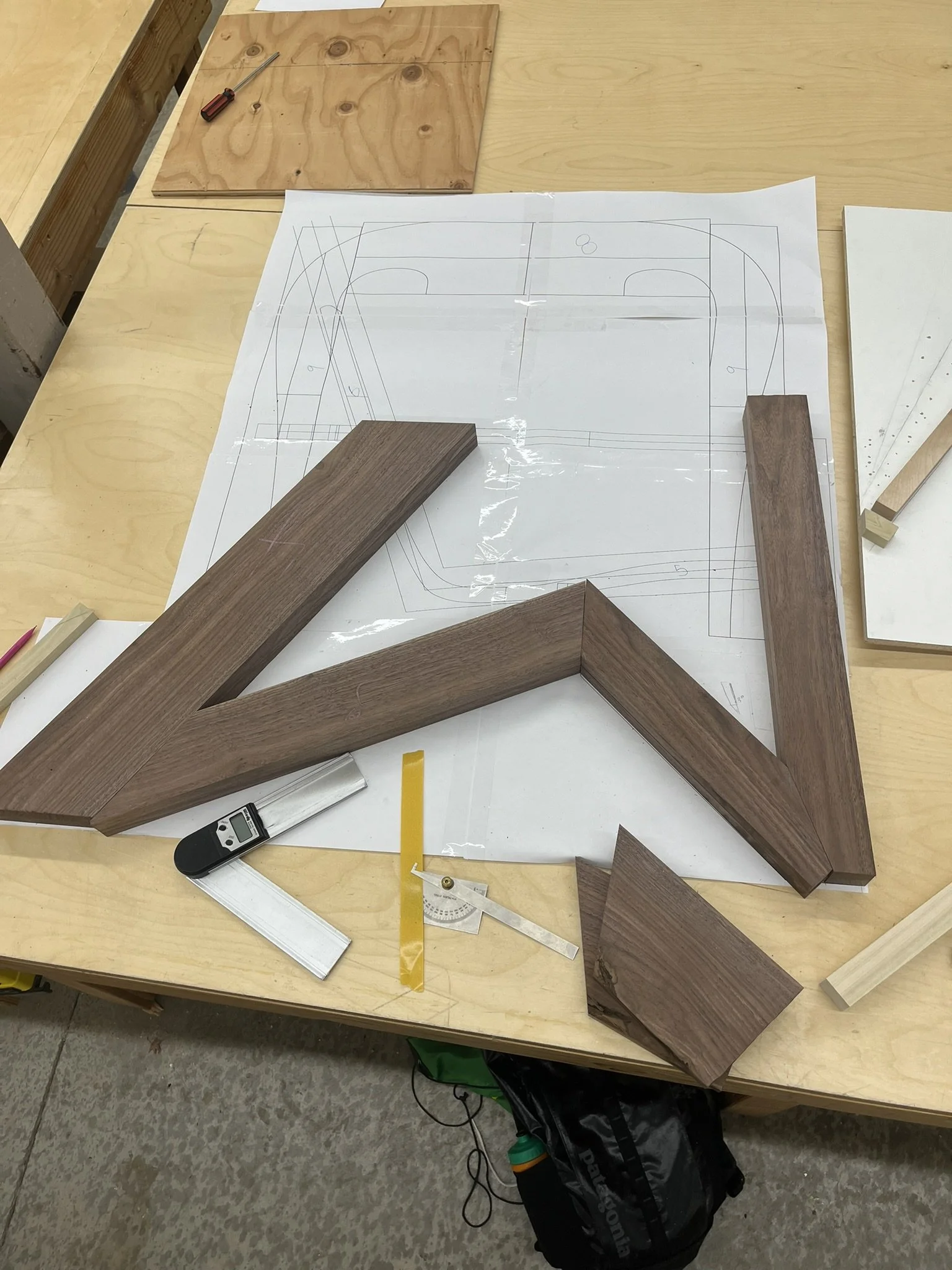 Using a scale drawing from my CAD model angles were cut cut begin forming the frame