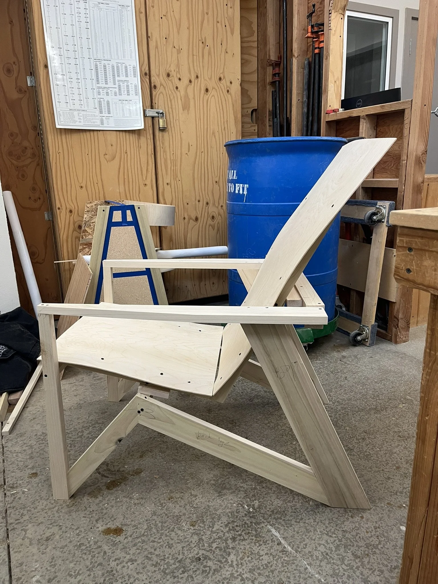 The structure and curvature of the seat was added using bending plywood.